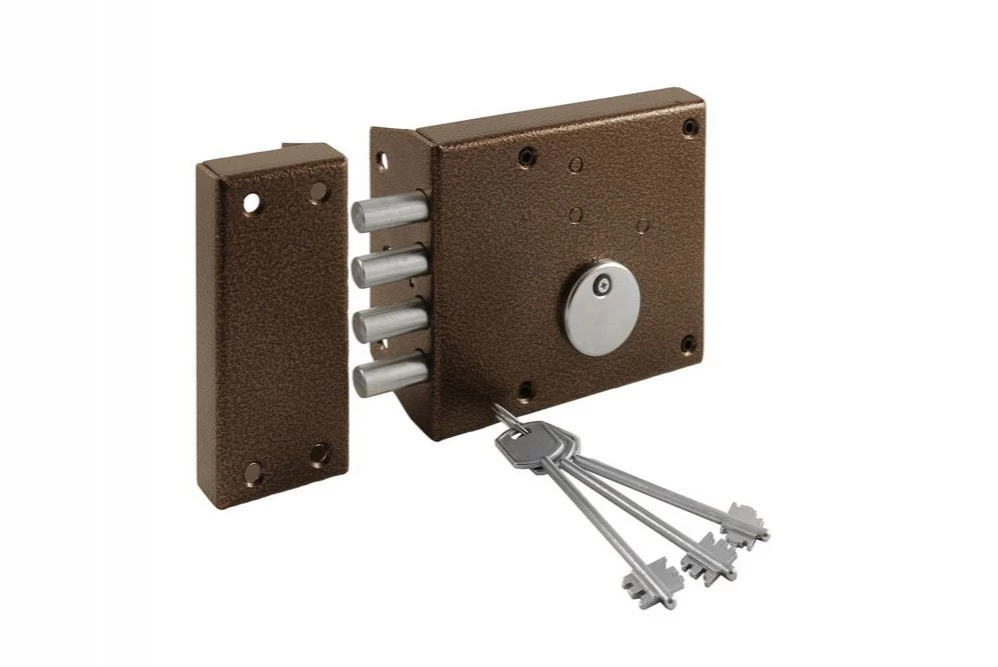 Замок накладной сувальдный ЗН4-2 предназначен для деревянных и металлических дверей. Материал изготовления: сталь. Количество секретных комбинаций: 46 000. Четыре ригеля диаметром 11 мм с ходом 26 мм. Цвет: медь. Комплектация: замок, 3 сувальдных ключа, ответная планка, 1 накладка, крепежная фурнитура.