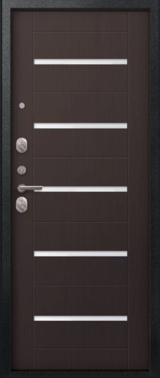 Надежная входная Дверь V-05 Черный муар - Темная лиственница премиум класса по цене 42 953 руб. Большая толщина стали защитит от проникновения в ваш дом, квартиру или коттедж. Используется очень качественная фурнитура: замки, цилиндры, ручки, защелки. Покрытие и отделка двери изготовлено под внимательным контролем производителя. Дверь имеет долгий срок службы и гарантию.